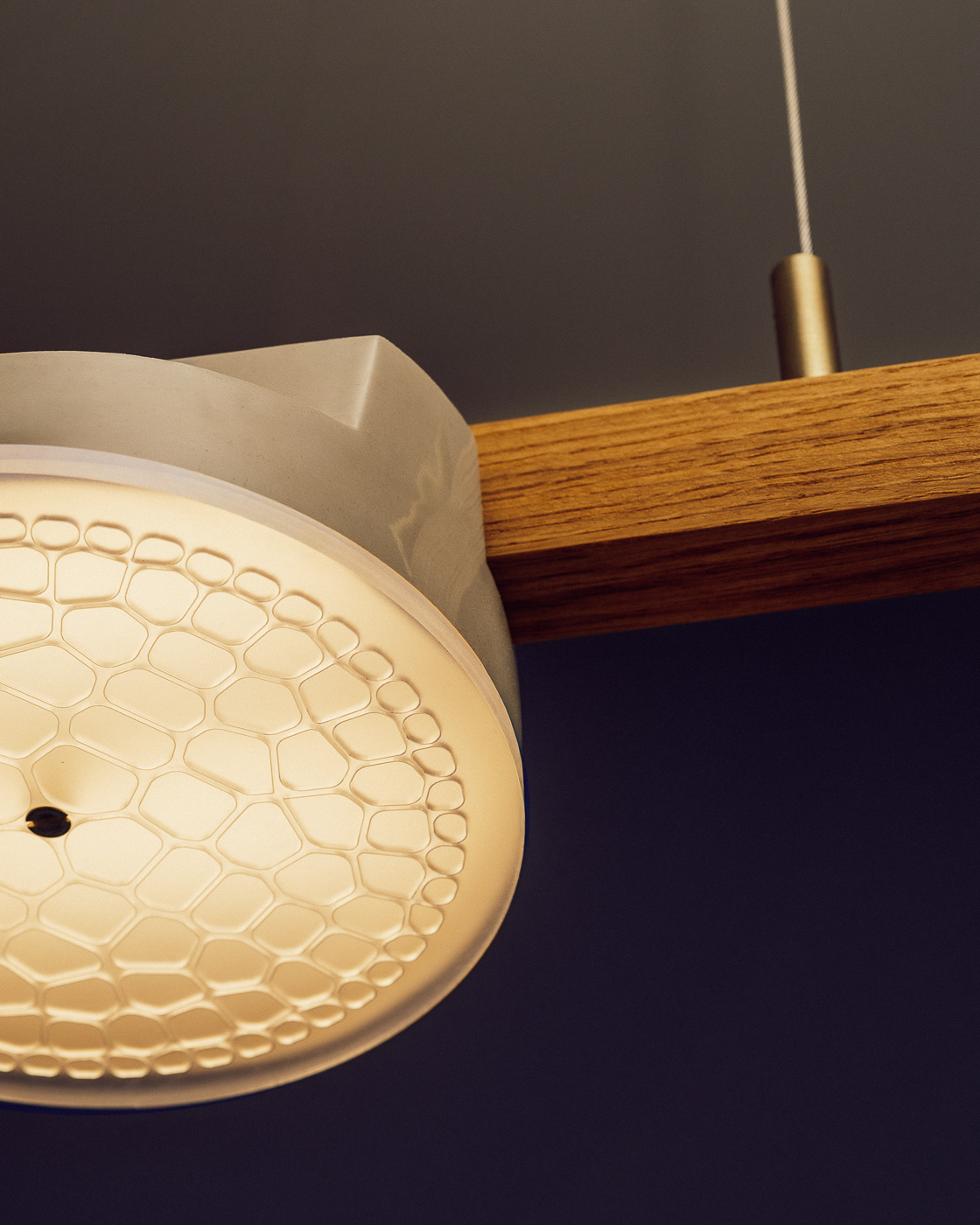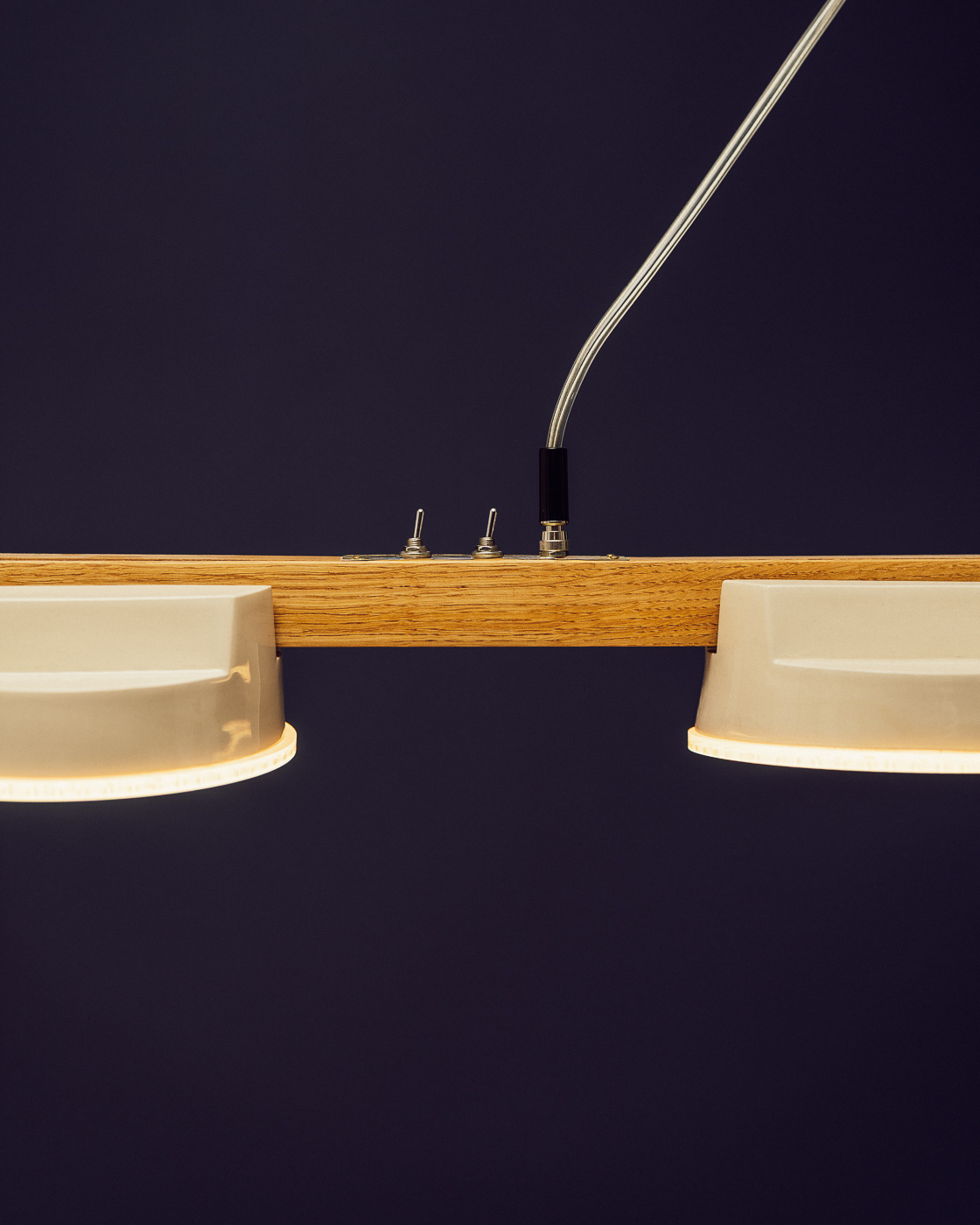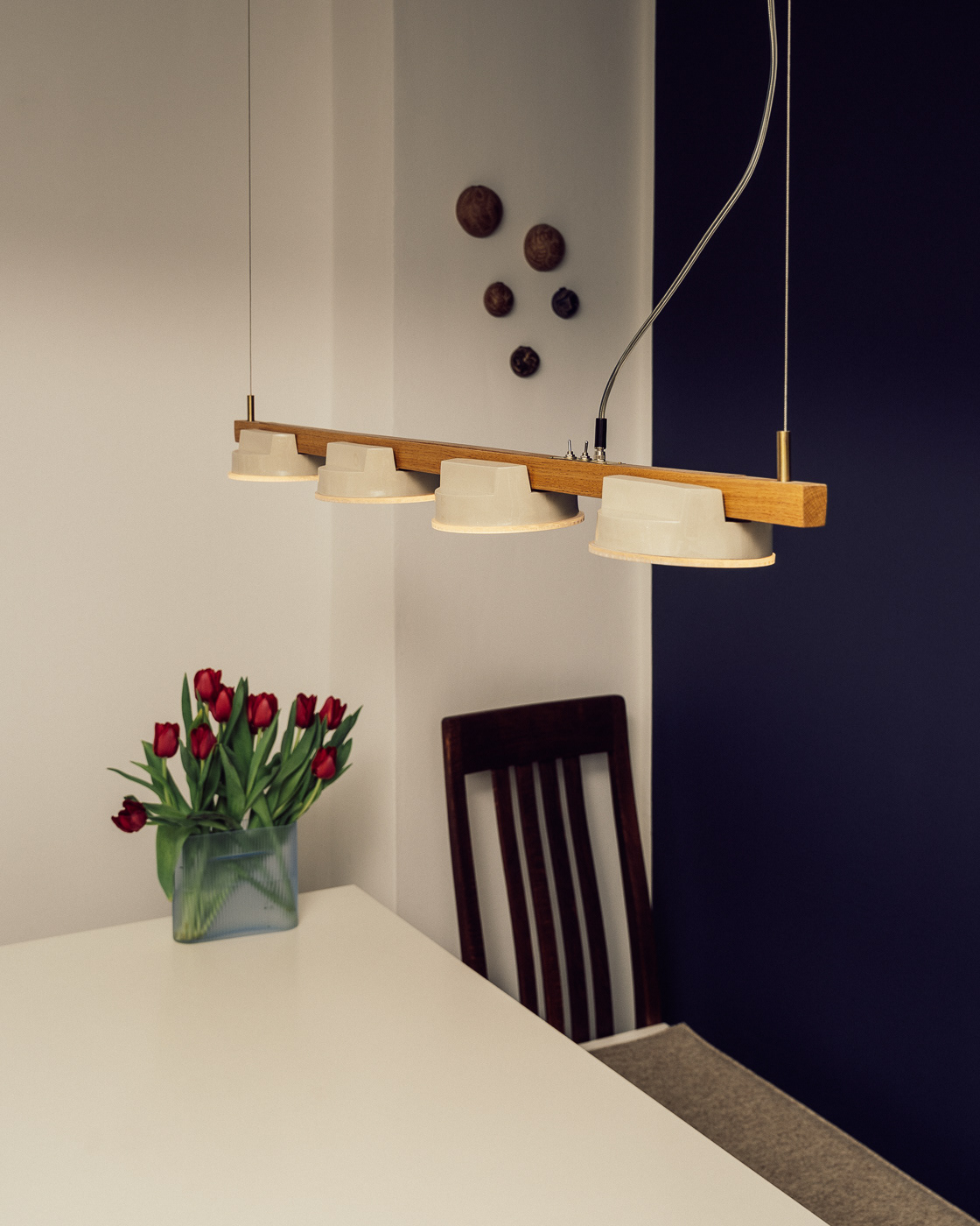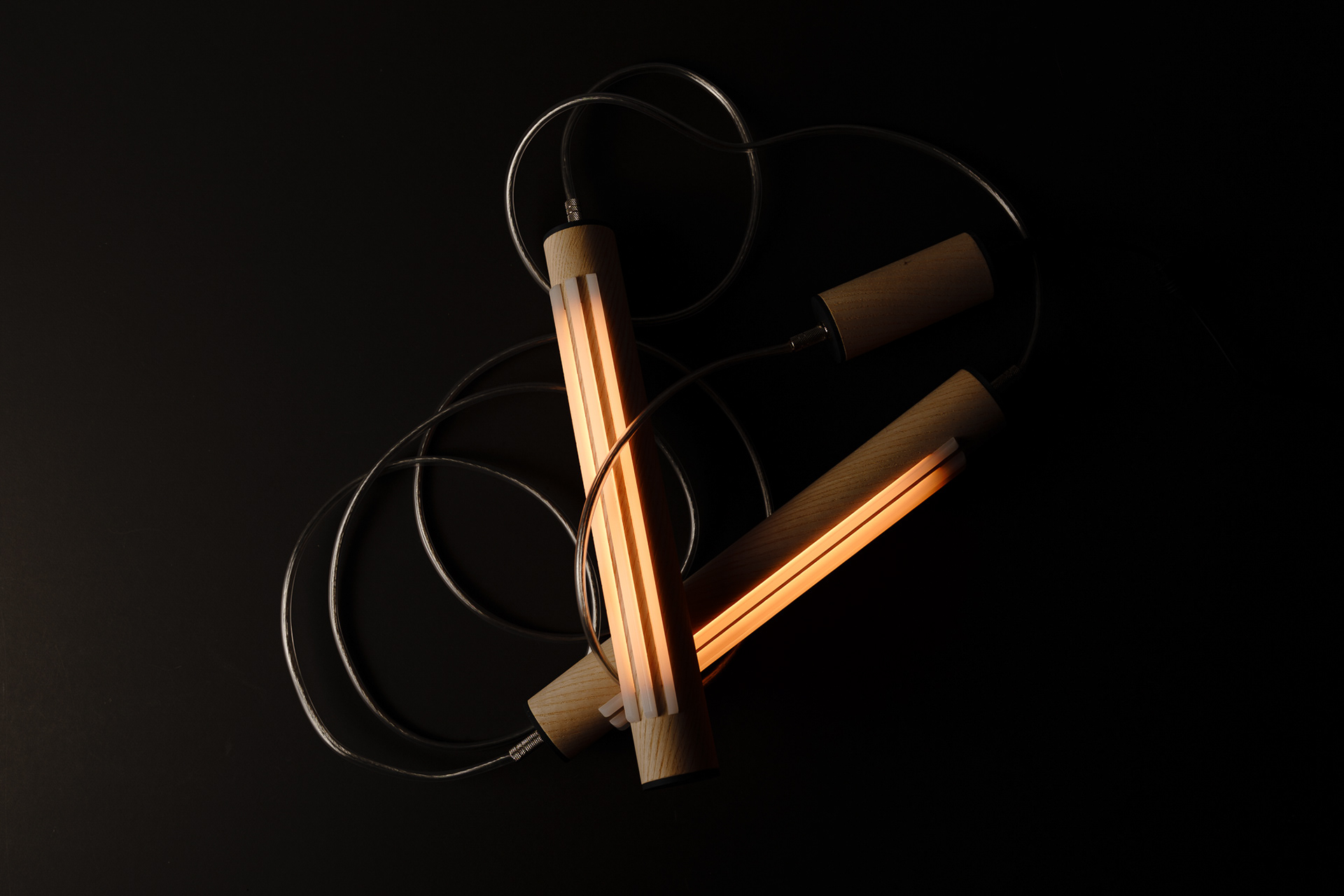 A modular system made of wooden lights and cables.