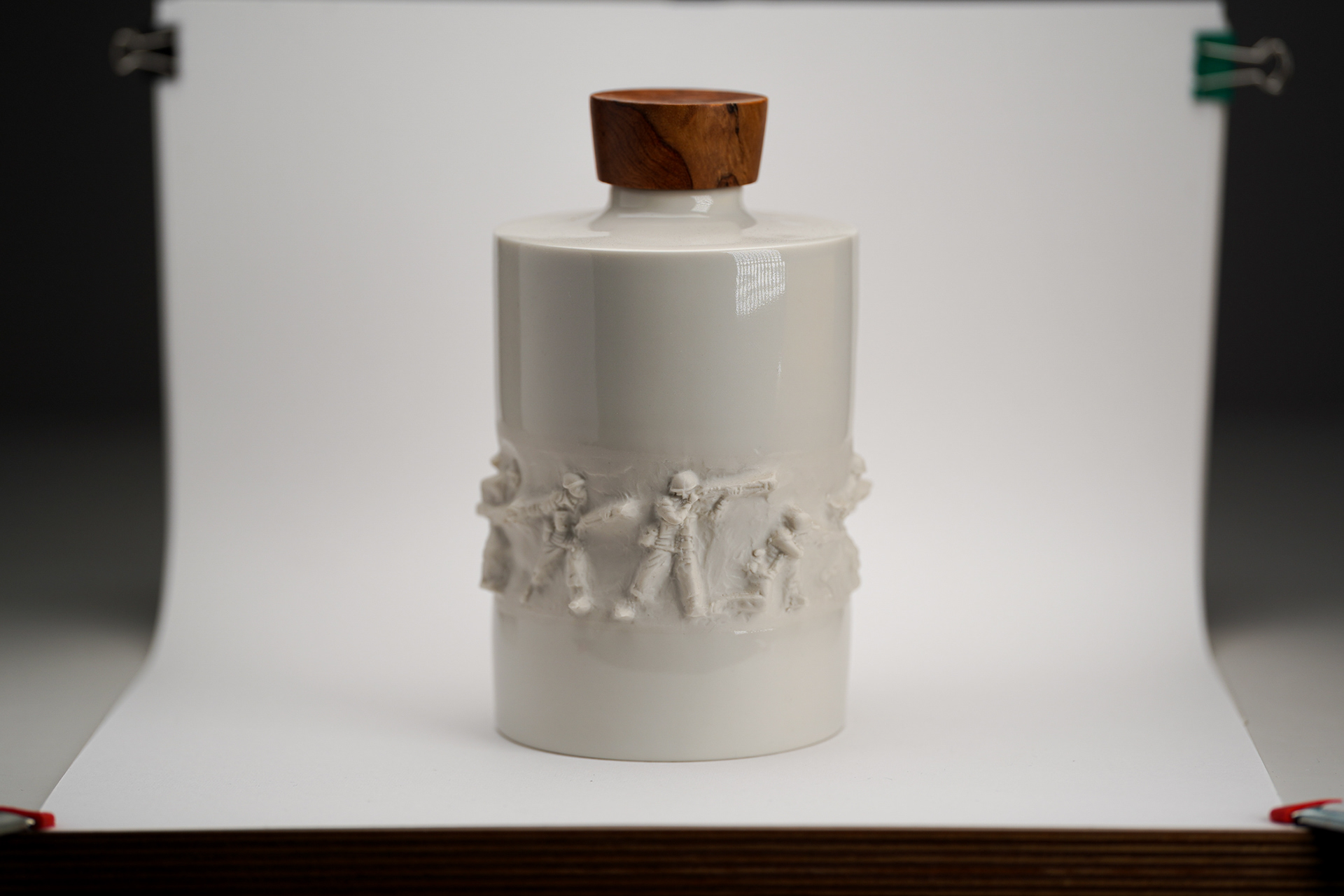 The truly affecting story of a single soldier contradicts my experience during my travels. There were monuments honoring the fallen soldiers who had diet for their people and fatherland in nearly every town I travelled to. Most of the soldiers lost their lives in a gruesome way. The vessel as an everyday object cites the language of war memorials. Socially honored soldiers, worshipped by countless monuments, shall get a monument where they really are missing, where the honorable death is turned into a bitter los: the living room of the bereaved.